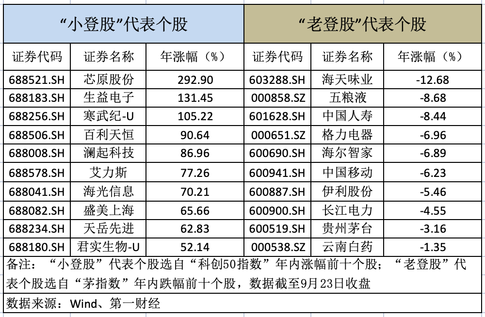 “老登股”年内被“小登股”暴打